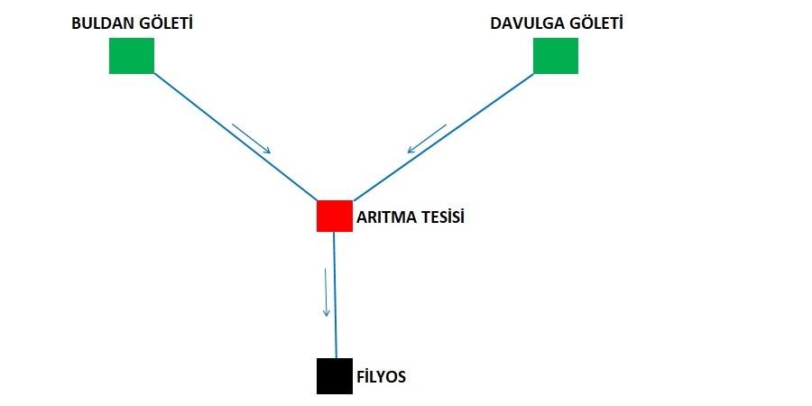 Göletlerin suyu Gümüşpınar Köyünde yapılacak Arıtma Tesisine akıtılacaktı ve buradan Filyos’a kadar olan beldelere ve köylere verilecekti. Projenin krokisi Foto-16’da verilmiştir.