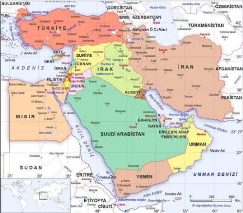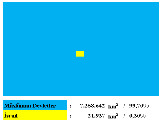 İsrail yüzölçümü, İslam devletleri yüzölçümleri arasında kalmış bir noktadır.