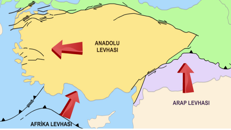 Aşağıdaki haritada Türkiye’yi etkileyen Tektonik Levhalar görülmektedir.