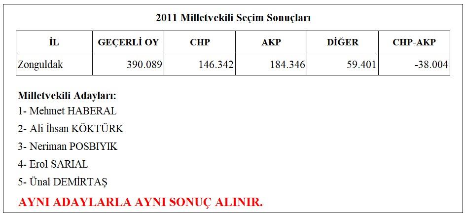Çizelge-1: 2011 Zonguldak Seçim Sonucu