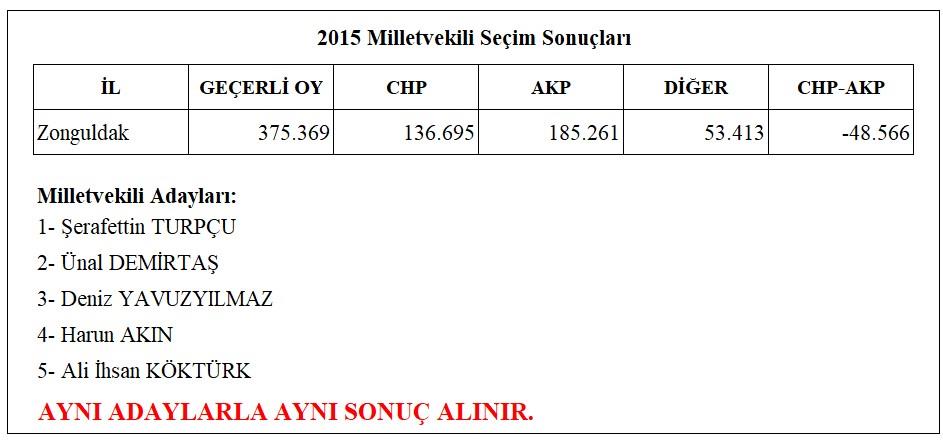 Çizelge-2: 2015 Zonguldak Seçim Sonucu
