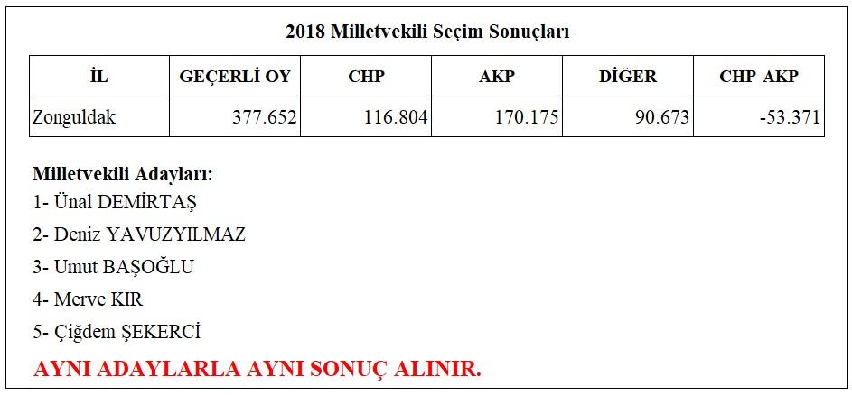 Çizelge-3: 2018 Zonguldak Seçim Sonucu