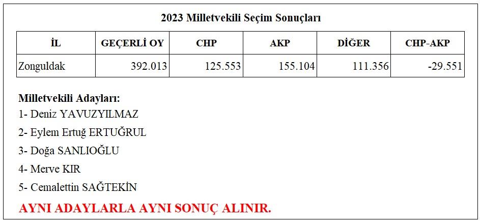 Çizelge-4: 2023 Zonguldak Seçim Sonucu