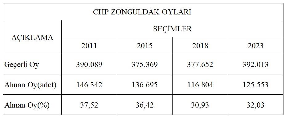 CHP, 2023 seçiminde; 2011 seçiminde aldığı oy’un (146.342 – 125.553 = 20.789) gerisinde kalmıştır, üç kişiden biri bile CHP’ye oy vermemiştir.